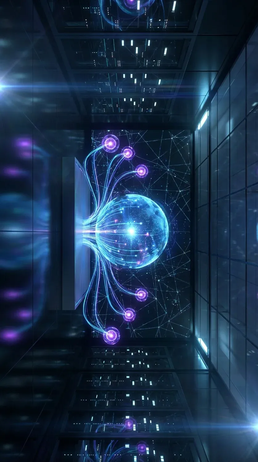 Egy központi felügyelő AI ügynök absztrakt vizualizációja, amint több specializált alügynököt irányít egy hálózatban, szimbolizálva az egyedi automatizálási megoldásokat.